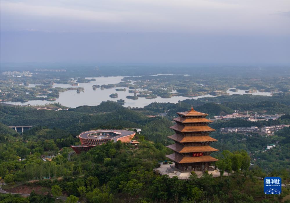 這是在成都龍泉山城市森林公園拍攝的被稱(chēng)為“城市之眼”的丹景臺(5月12日攝)。