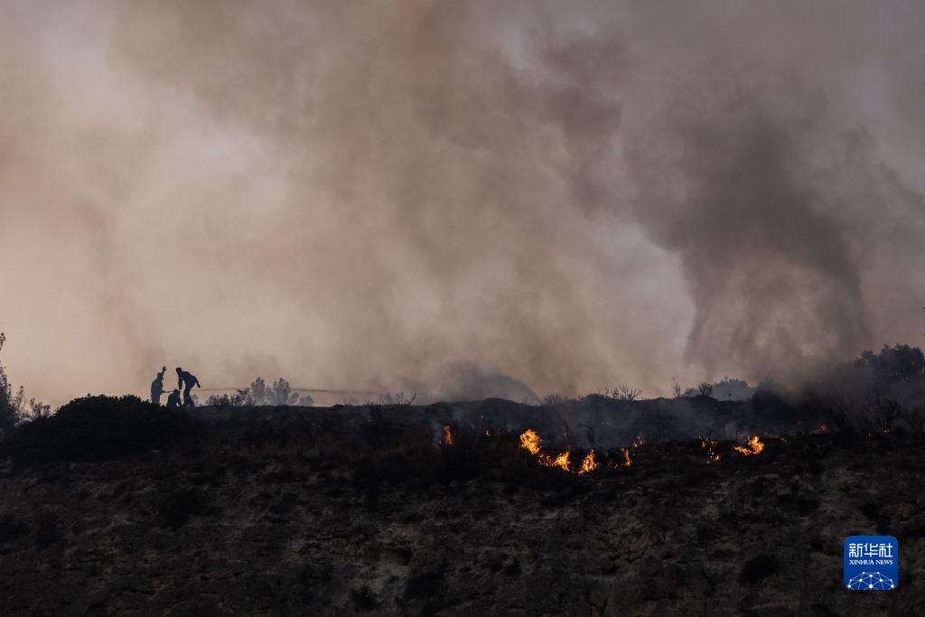 7月17日,在希臘雅典郊外的盧特拉基附近,消防員嘗試滅火。