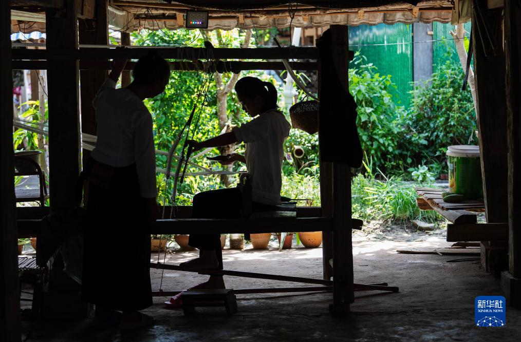 7月16日,依波逢的外婆(左)指導依波逢織布。