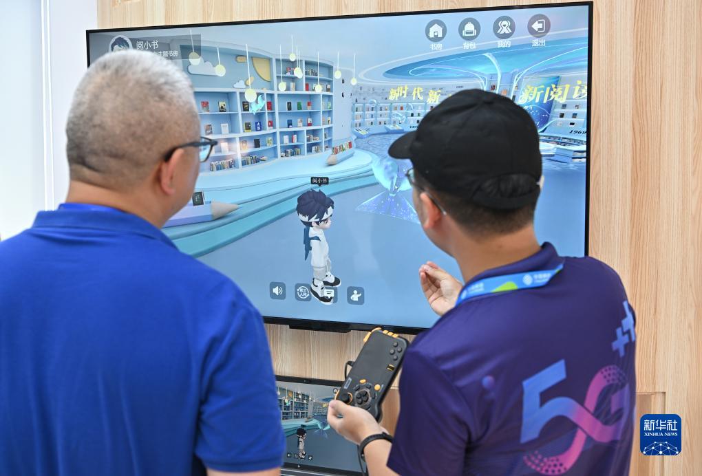 7月18日,與會(huì )者在大會(huì )設置的數字技術(shù)與應用成果展的中國移動(dòng)展臺了解“比特書(shū)房”元宇宙閱讀。
