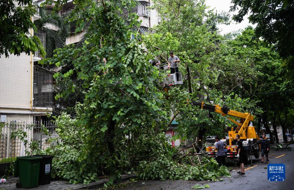 7月18日,在廣東湛江市海園路,市政人員在清理倒伏樹(shù)木。
