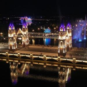 夜幕降臨,在新疆阿勒泰地區布爾津縣七彩河畔,3D全息投影技術(shù)水幕全息燈光秀表演吸引大批游客駐足觀(guān)看。