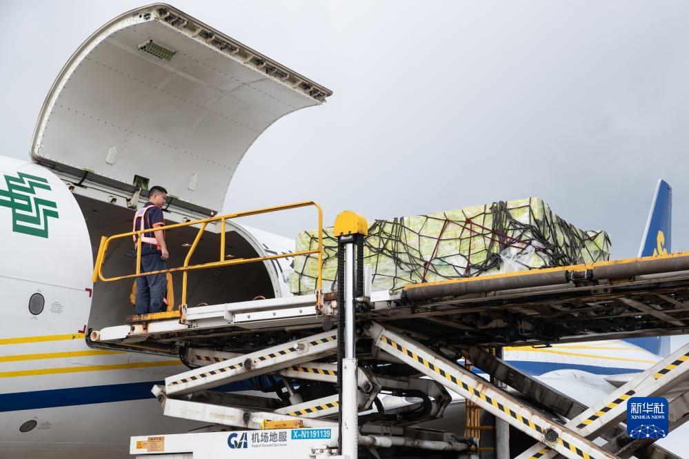 6月28日,在重慶巫山機場(chǎng),機場(chǎng)工作人員將打包好的巫山脆李運送至中國郵政航空公司的全貨機。