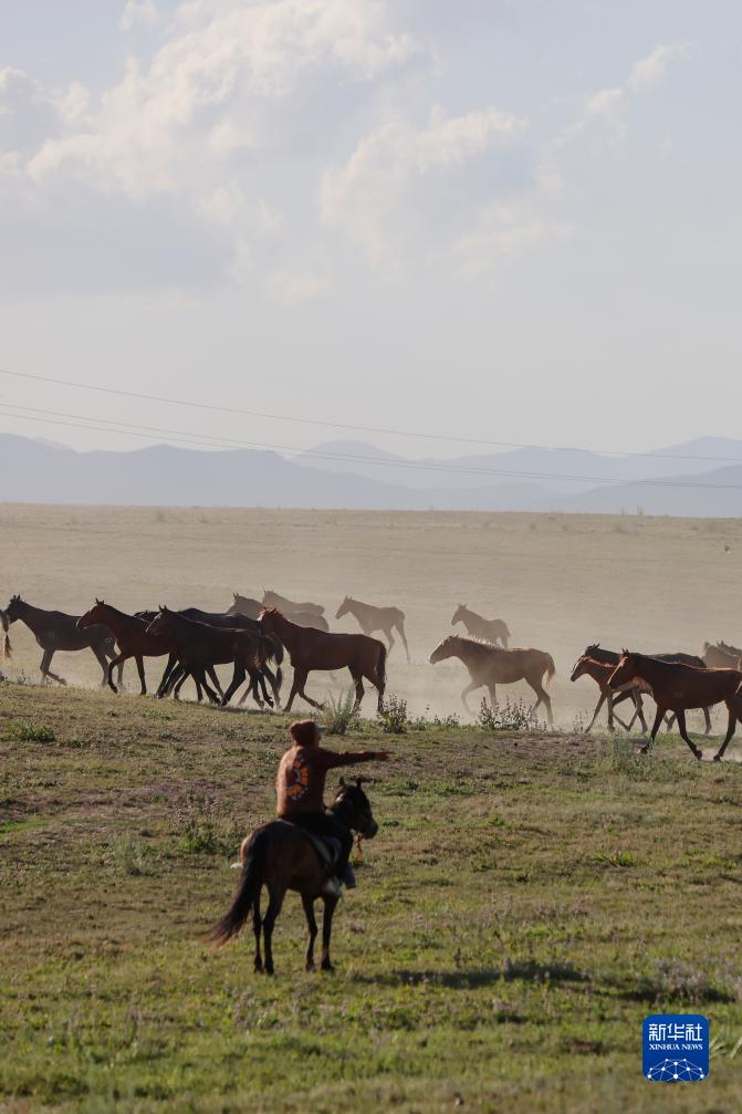 牧民在新疆伊犁哈薩克自治州昭蘇縣一處草地放牧(7月16日攝)。