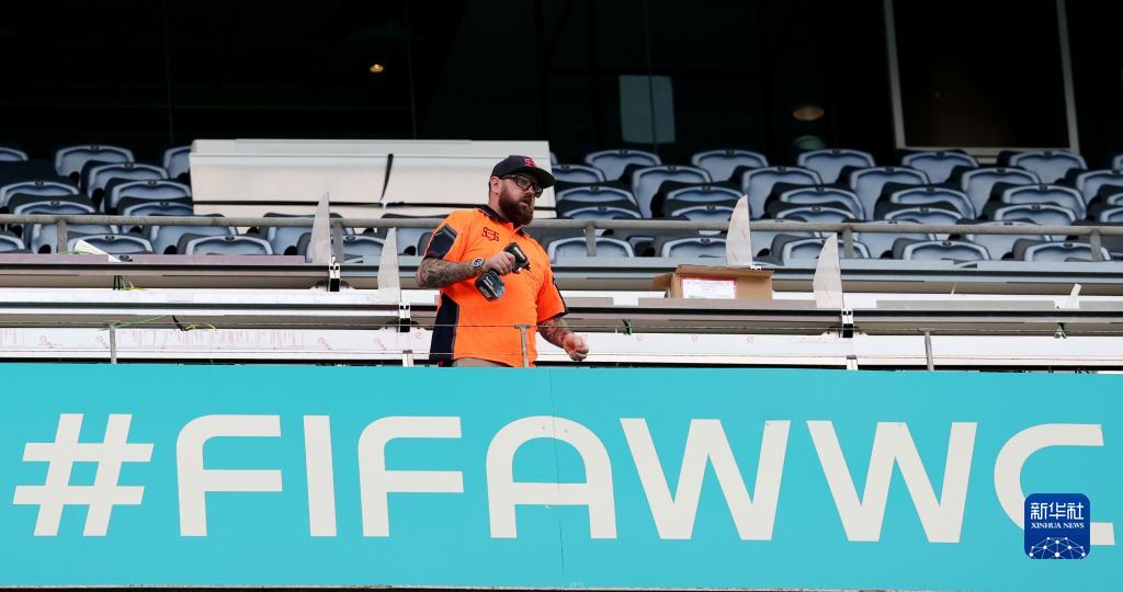 7月17日,一名工人在位于悉尼的澳大利亞體育場(chǎng)內工作。