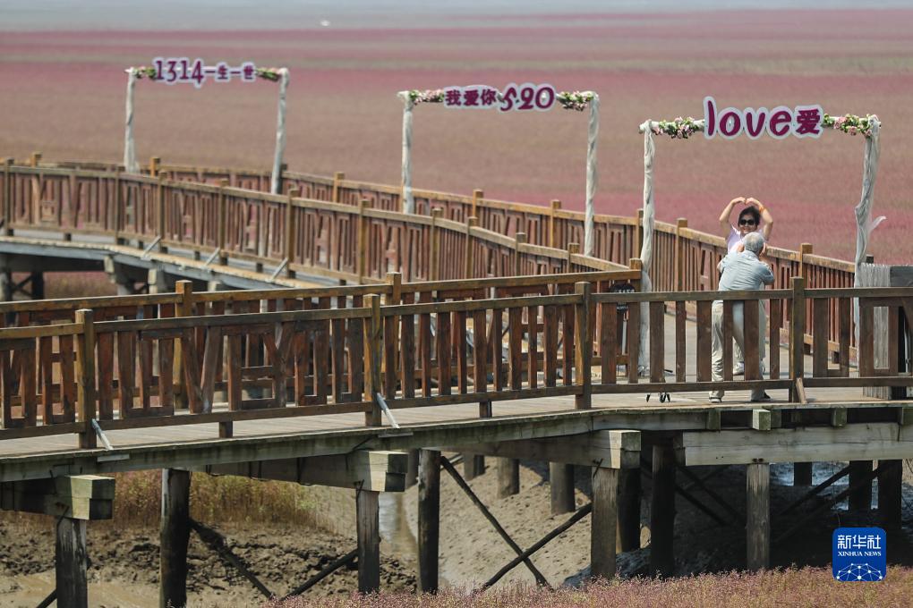 7月19日,游客在紅海灘國家風(fēng)景廊道景區內游玩。