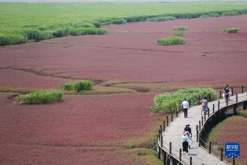 7月19日,游客在紅海灘國家風(fēng)景廊道景區內游玩。