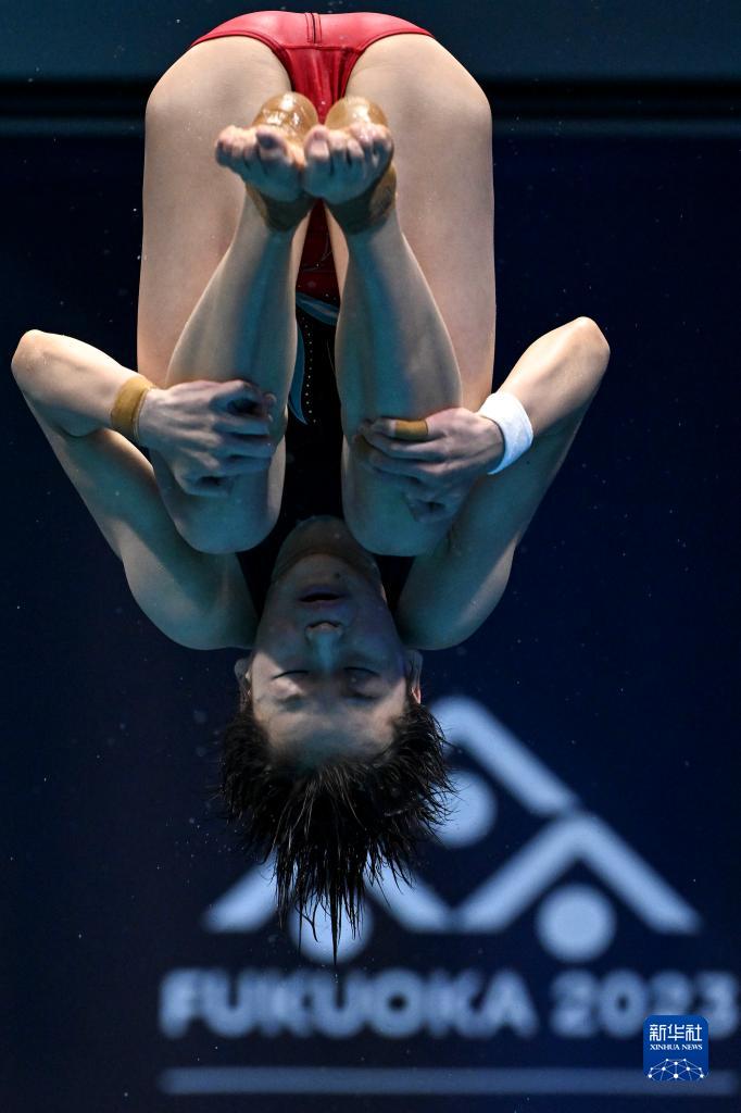 當日,在日本福岡舉行的2023年世界游泳錦標賽女單10米跳臺決賽中,中國選手陳芋汐、全紅嬋分別以457.85分與445.60分的成績(jì)包攬冠亞軍。