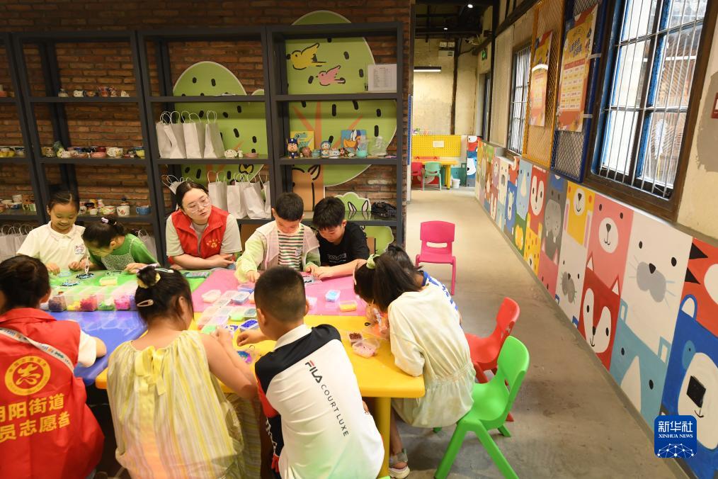7月19日,青少年在小西街手作生活街體驗“拼豆”制作。