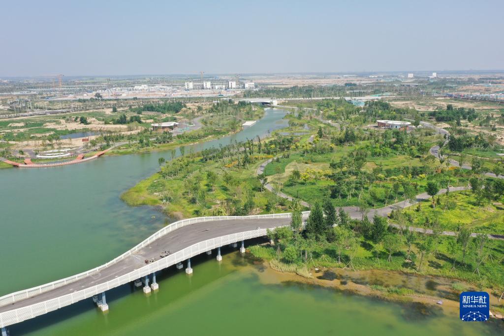 河北雄安新區啟動(dòng)區中央綠谷及東部溪谷生態(tài)廊道一角(7月18日攝,無(wú)人機照片)。
