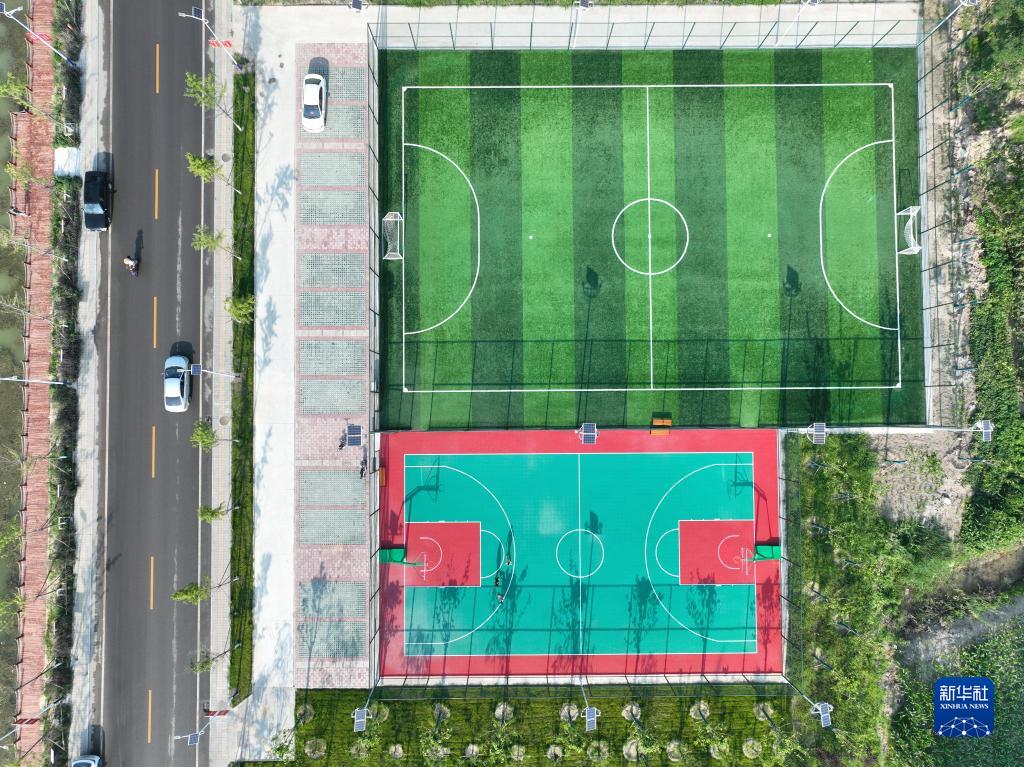 河北省唐山市豐南區趙新莊村內新建的足球場(chǎng)和籃球場(chǎng)(7月19日攝,無(wú)人機照片)。