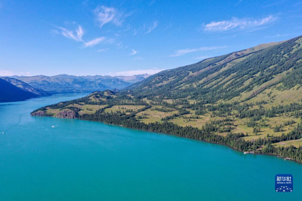 7月19日拍攝的新疆阿勒泰地區喀納斯景區風(fēng)光(無(wú)人機照片)。