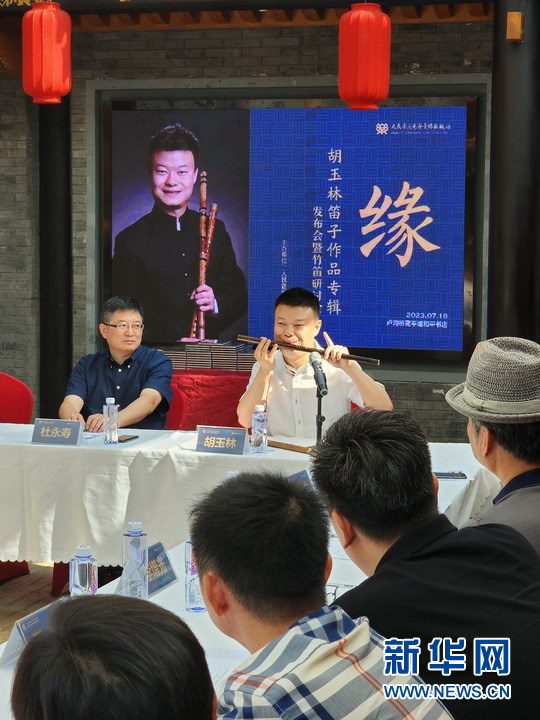 7月18日,著(zhù)名青年笛簫演奏家、中央音樂(lè )學(xué)院副教授胡玉林笛子作品《緣——胡玉林笛子作品專(zhuān)輯》發(fā)布會(huì )暨竹笛音樂(lè )與樂(lè )器發(fā)展研討會(huì )在北京舉行。圖為發(fā)布會(huì )現場(chǎng)。新華網(wǎng)發(fā)