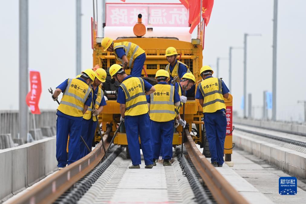 7月20日,中鐵十一局施工人員在杭溫鐵路上進(jìn)行鋪軌作業(yè)。