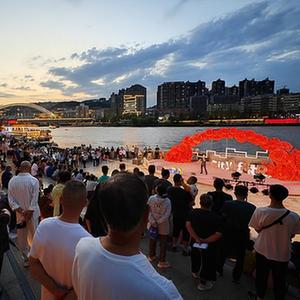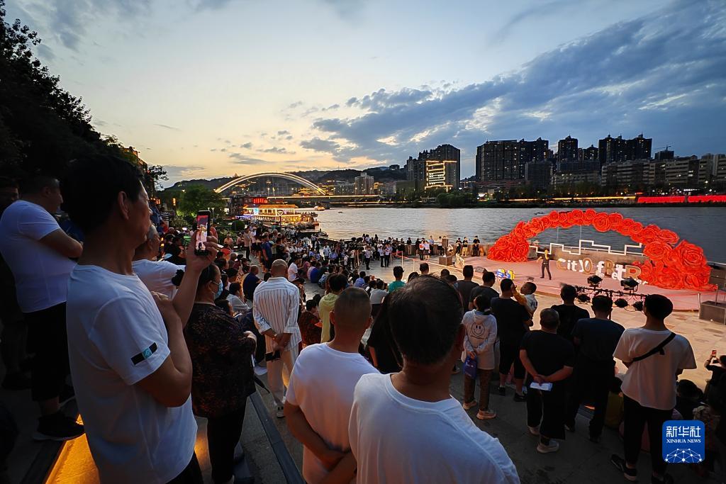 7月19日,在蘭州市城關(guān)區,游客在黃河岸邊欣賞黃河之濱百日千場(chǎng)音樂(lè )展演活動(dòng)。