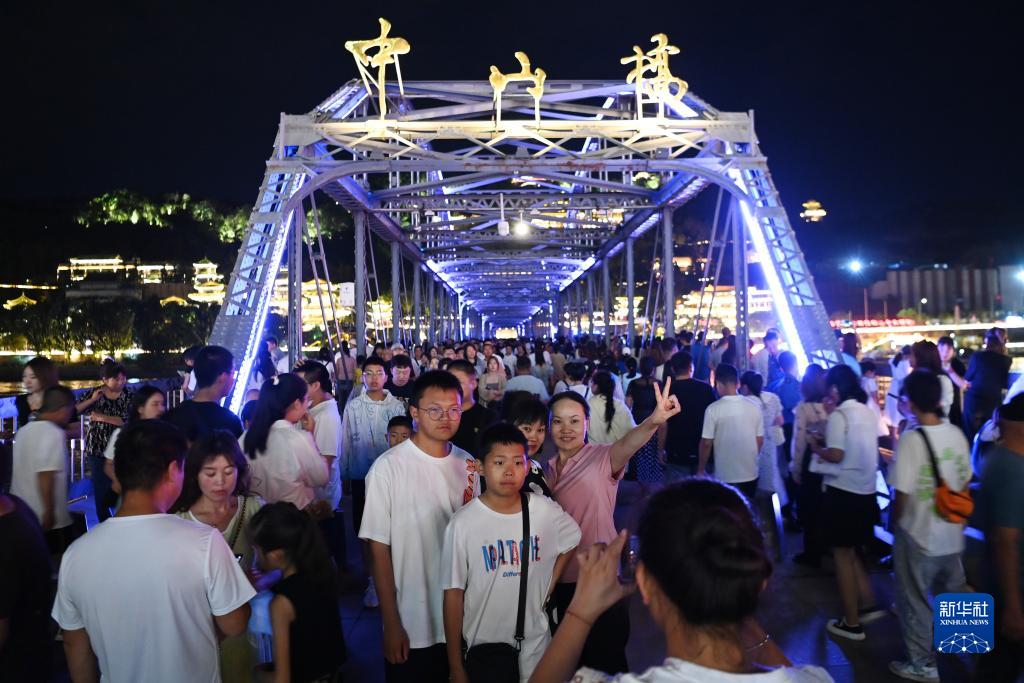 7月19日,游客在位于蘭州市城關(guān)區的蘭州黃河鐵橋——中山橋游覽。