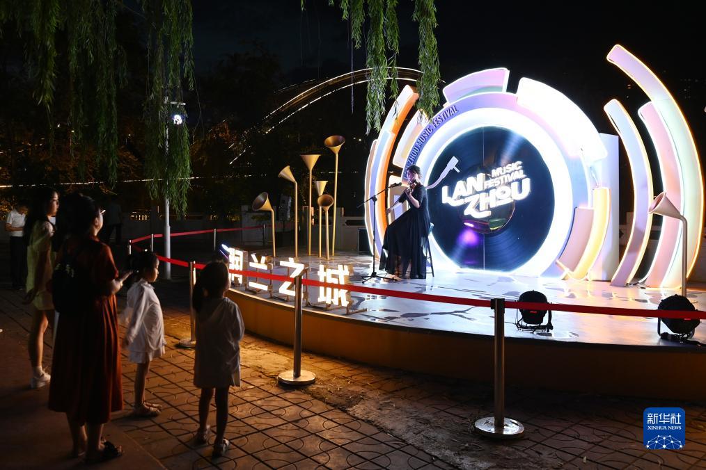 7月19日,在蘭州市城關(guān)區,游客在黃河岸邊欣賞黃河之濱百日千場(chǎng)音樂(lè )展演活動(dòng)。