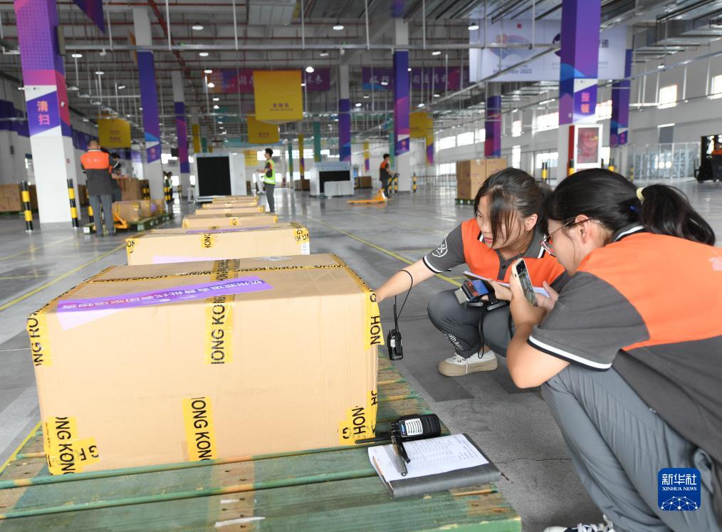 7月20日,圓通速遞工作人員在杭州亞運會(huì )物流中心登記、入庫首批空運入境的亞運物資。