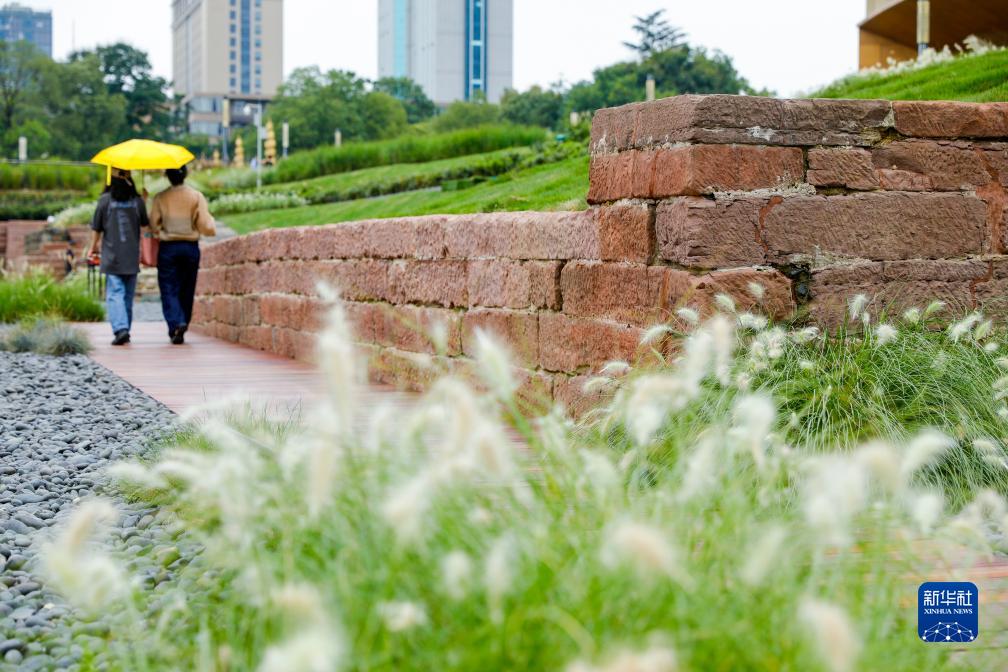 7月20日,在成都東華門(mén)遺址公園外場(chǎng)遺址區,人們在參觀(guān)原狀展示的明代蜀王府水道遺跡。