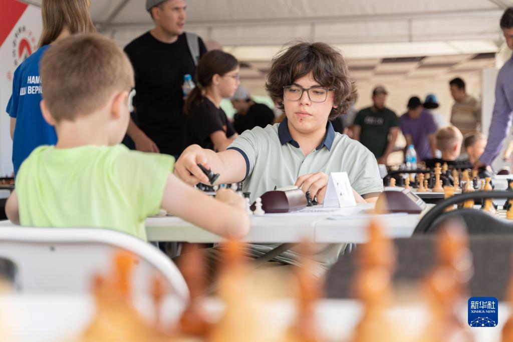7月20日,在俄羅斯遠東城市符拉迪沃斯托克,兒童參加街頭國際象棋比賽。