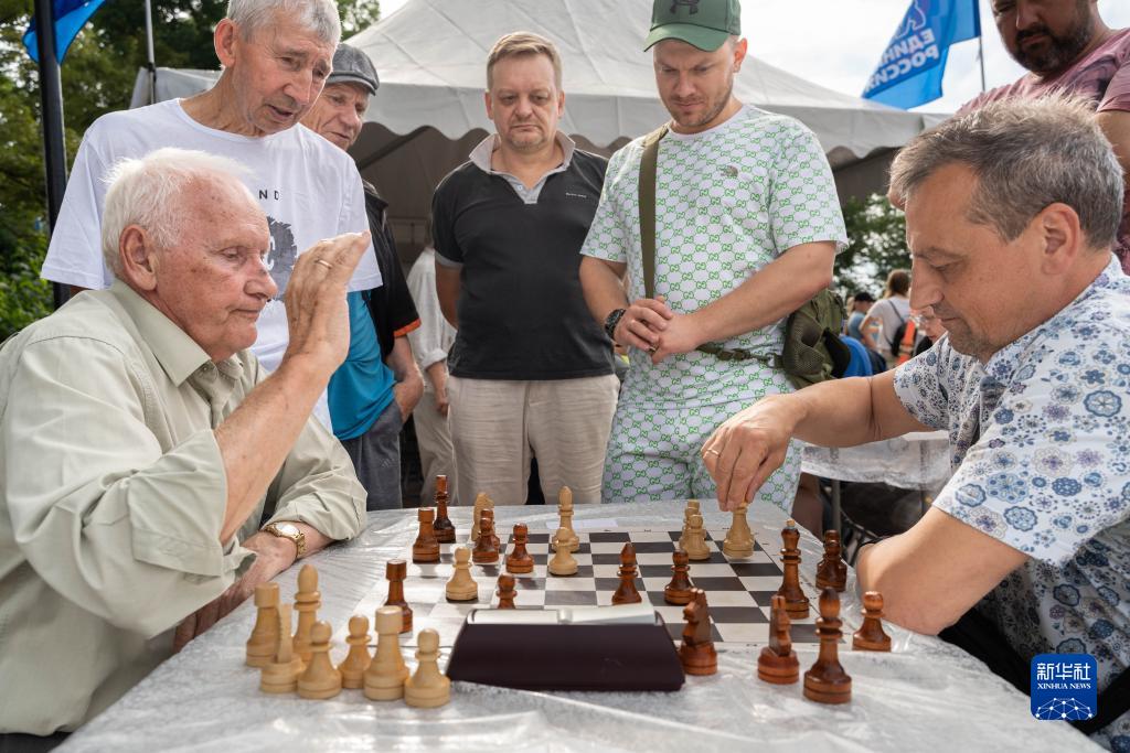 7月20日,在俄羅斯遠東城市符拉迪沃斯托克,人們參加街頭國際象棋比賽。