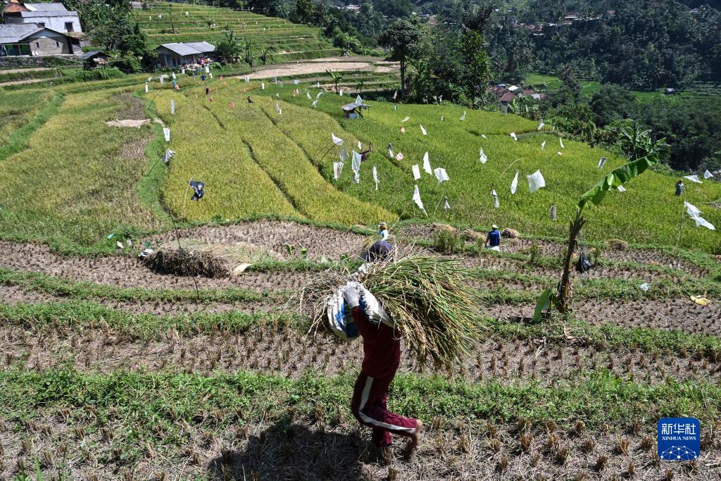 7月20日,農民在印度尼西亞西爪哇省茂物地區的鄉間收獲稻米。