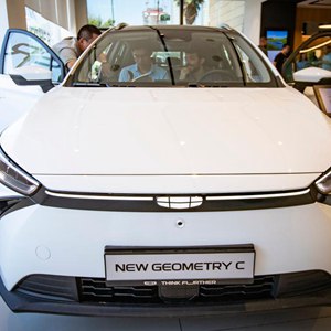 這是6月21日在以色列特拉維夫一家吉利銷(xiāo)售點(diǎn)拍攝的新款幾何C電動(dòng)車(chē)。