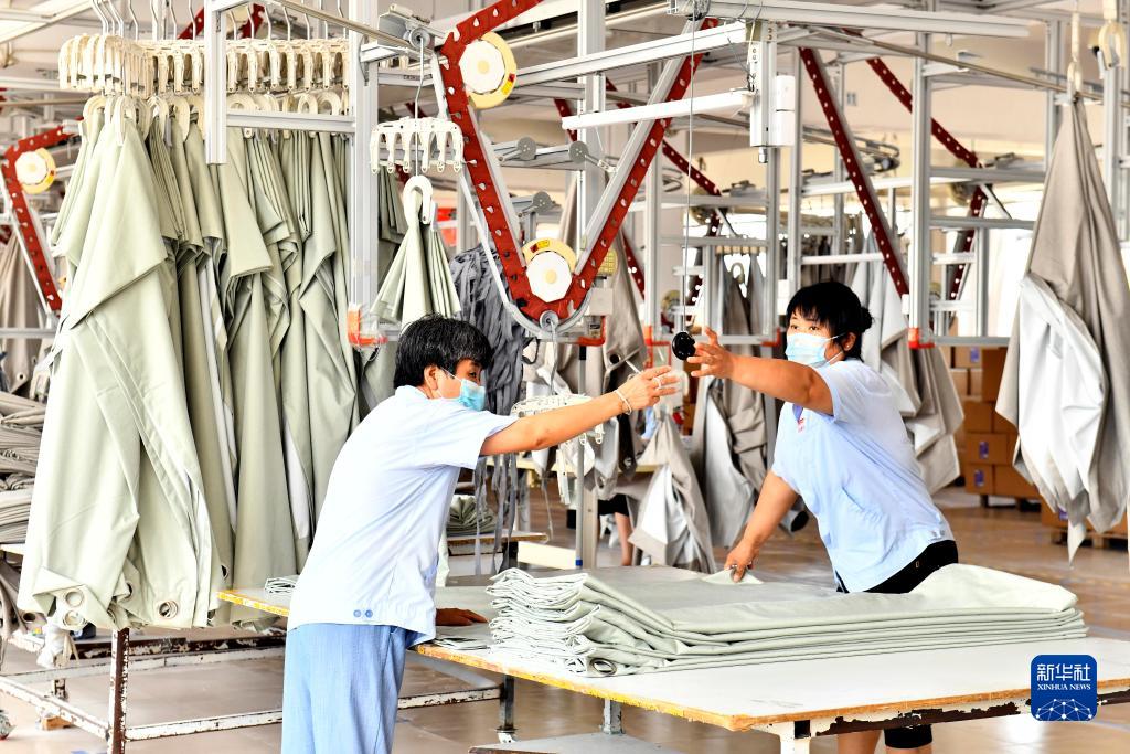 7月21日,在位于威海市文登區的山東銀豐家用紡織品有限公司,工人在加工家紡產(chǎn)品。