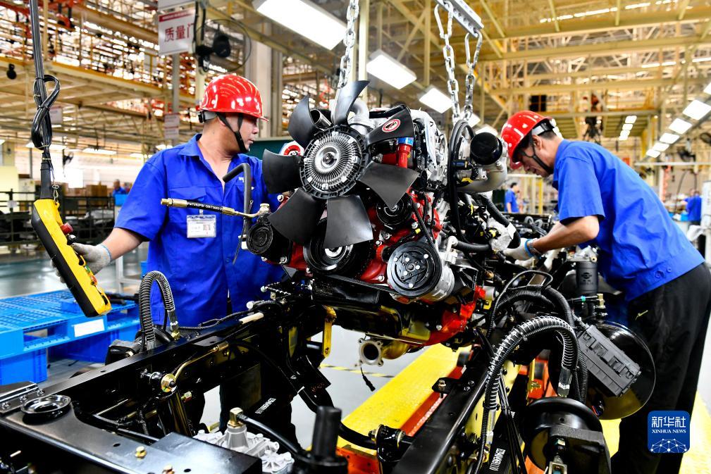 7月21日,在位于威海市文登區的濰柴新能源商用車(chē)有限公司,工人在生產(chǎn)線(xiàn)上裝配汽車(chē)。
