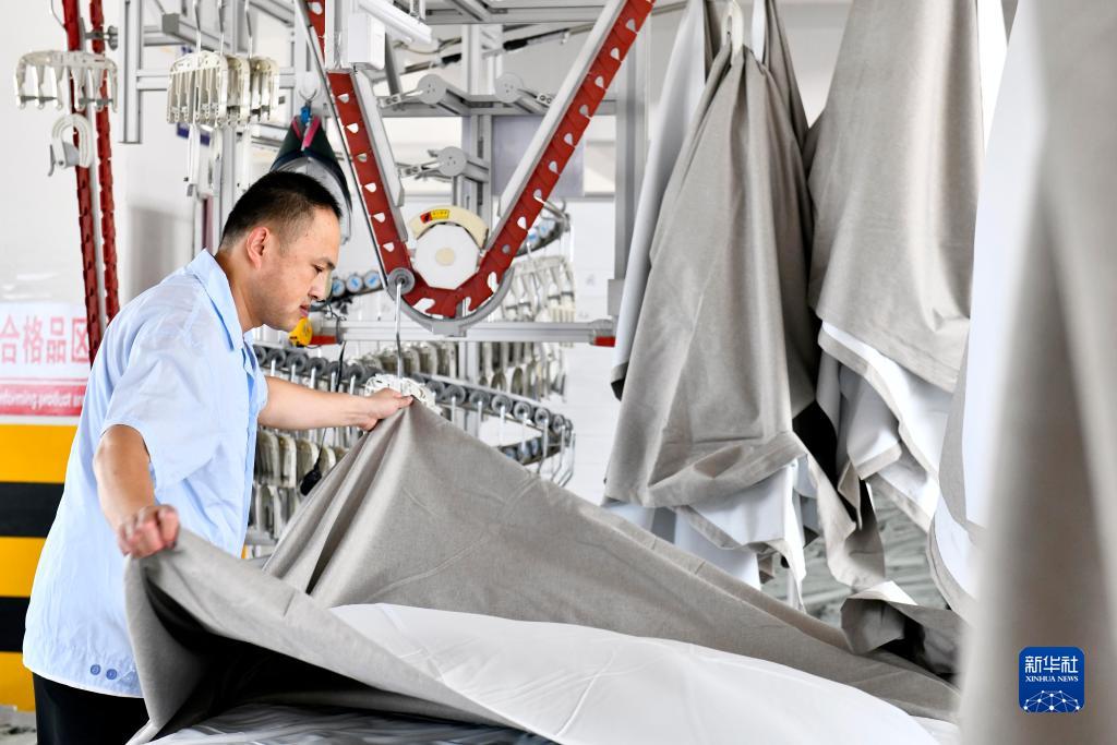 7月21日,在位于威海市文登區的山東銀豐家用紡織品有限公司,工人在加工家紡產(chǎn)品。