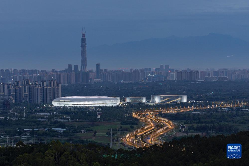 這是從成都龍泉山方向拍攝的東安湖體育公園(7月4日攝)。