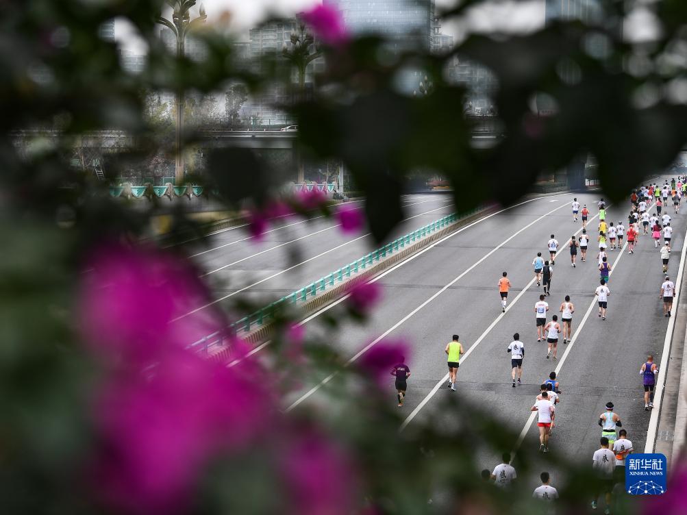 在成都天府大道,馬拉松愛(ài)好者在比賽中(2022年11月20日攝)。