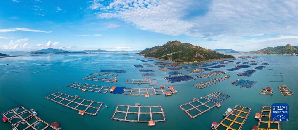 寧德三都澳白基灣海域,新型漁排綿延海上(無(wú)人機全景照片,7月17日攝)。