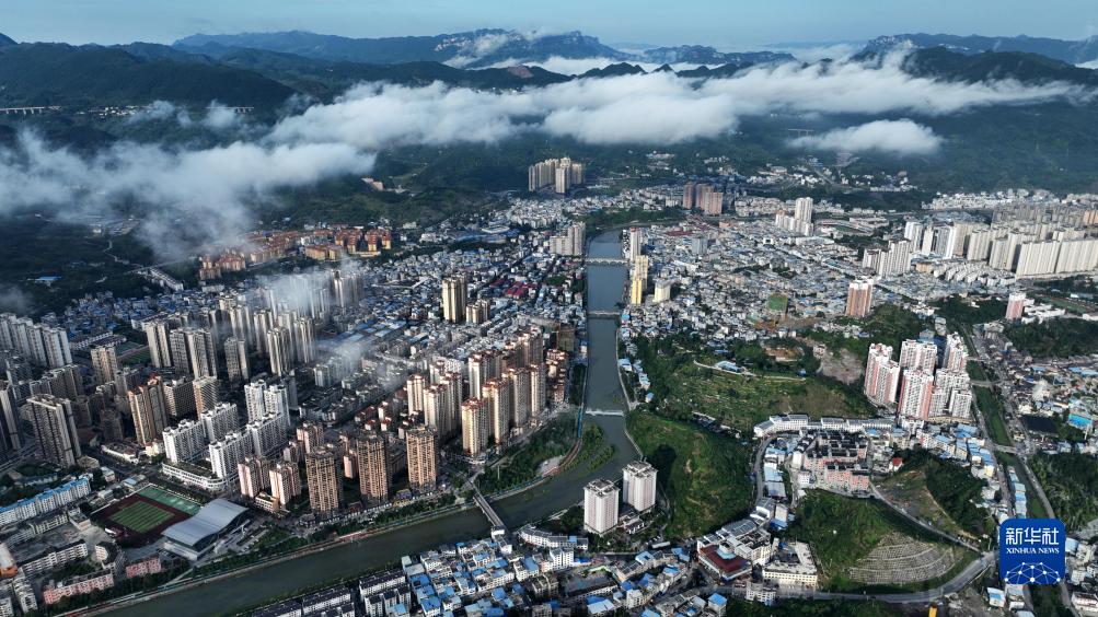 晨曦薄霧下的貴州省銅仁市印江土家族苗族自治縣縣城(無(wú)人機照片,7月21日攝)。