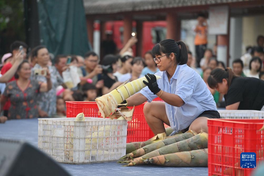 7月21日,在柳州市柳城縣“筍王”爭霸賽現場(chǎng),參賽選手比拼剝筍技能。