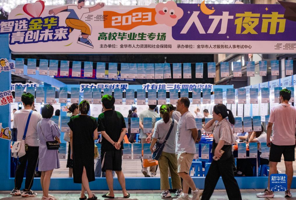 當日,浙江省金華市舉辦“人才夜市”高校畢業(yè)生專(zhuān)場(chǎng),多家生物醫藥、機械制造、新能源企業(yè)為求職者提供工作崗位,吸引了許多高校畢業(yè)生前往咨詢(xún)應聘。