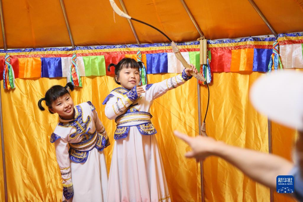 當日,為配合“漠北鋒鳴——鄂爾多斯青銅器文物精品展”,助力城市夜經(jīng)濟發(fā)展,上海市閔行區博物館開(kāi)展夜間“那達慕”大會(huì )。參觀(guān)者可以體驗射箭、拔河,品嘗特色美食,充分感受民俗風(fēng)情的魅力。