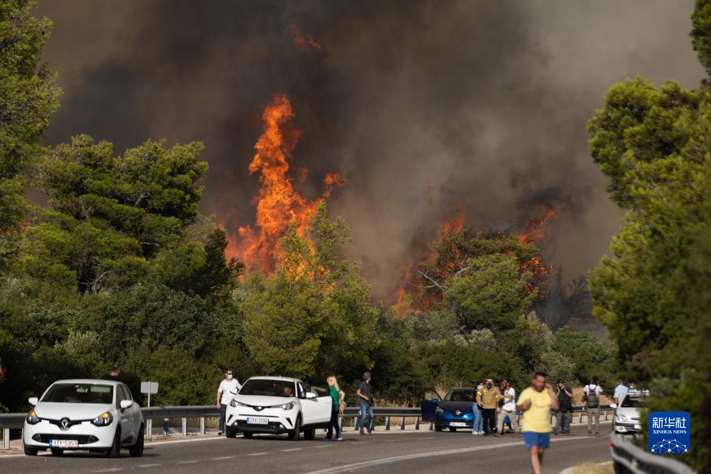 由于連日遭遇極端高溫,希臘首都雅典郊外17日發(fā)生兩起野火,導致數以千計人員疏散。