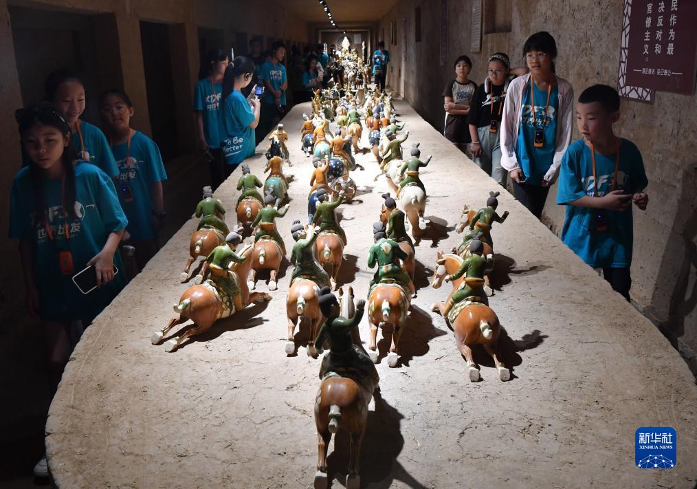 7月21日,參加研學(xué)活動(dòng)的學(xué)生在南石山村的唐三彩文化園內參觀(guān)。