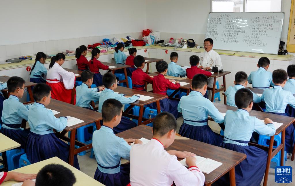 7月22日,萬(wàn)州區恒合土家族鄉一個(gè)研學(xué)基地內,參加暑期避暑研學(xué)活動(dòng)的學(xué)生在誦讀經(jīng)典古詩(shī)詞。