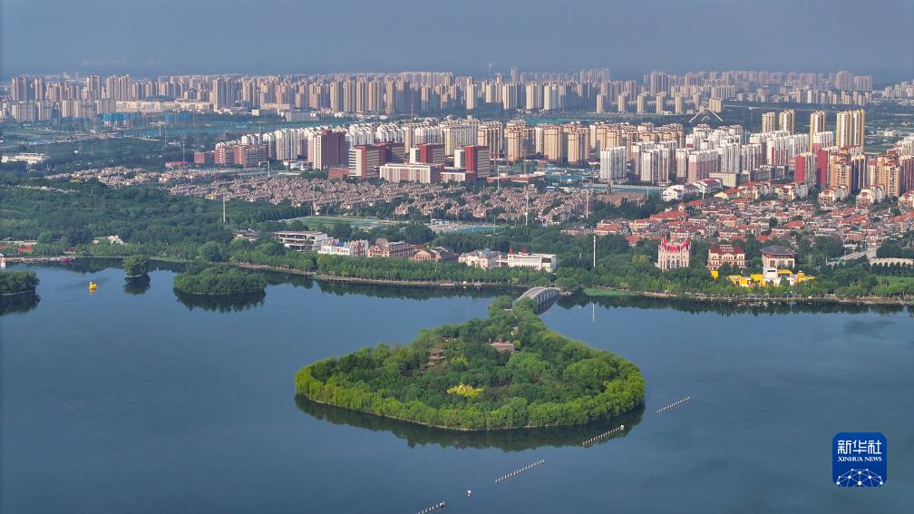 這是7月22日拍攝的河北省唐山市南湖及城市景觀(guān)(無(wú)人機照片)。
