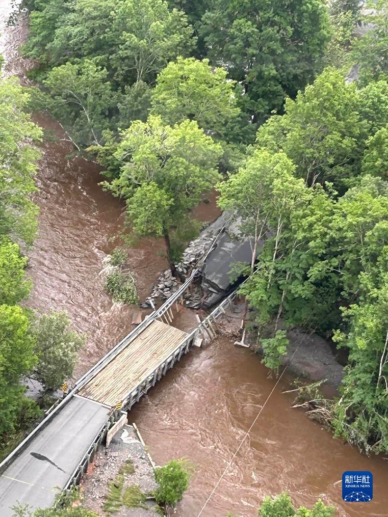 這是7月22日在加拿大新斯科舍省漢茨縣拍攝的一處被洪水破壞的橋梁。