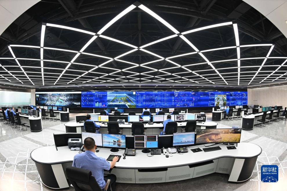 首鋼京唐鋼鐵聯(lián)合有限責任公司工作人員在生產(chǎn)管控中心工作(7月22日攝)。