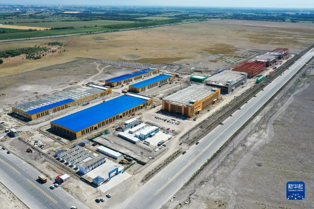 這是7月22日在新疆塔城重點(diǎn)開(kāi)發(fā)開(kāi)放試驗區先行發(fā)展區拍攝的正在建設的閩商智能電子產(chǎn)業(yè)園(無(wú)人機照片)。