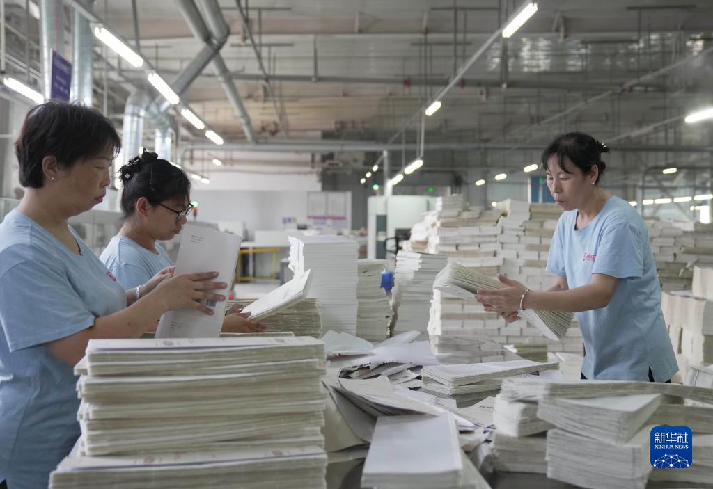 7月23日,工人在河北省肅寧縣的一家圖書(shū)印刷企業(yè)的裝訂車(chē)間工作。