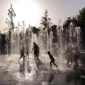 7月23日,兒童在希臘雅典一處噴泉玩水。