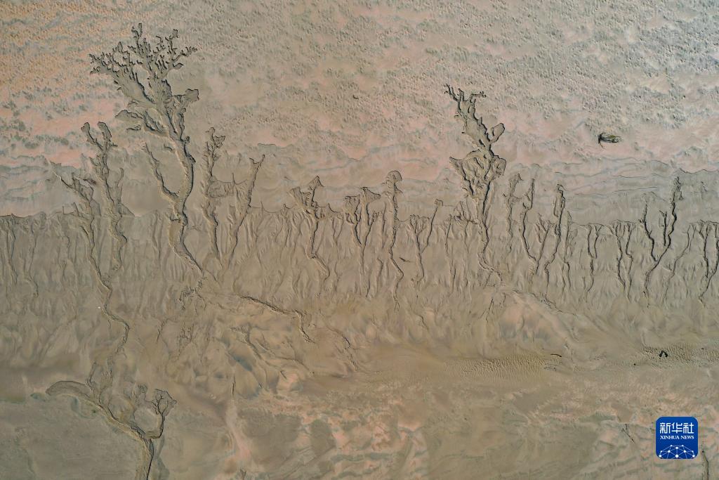 近日,隨著(zhù)黃河調水調沙結束,黃河河南省開(kāi)封市黑崗口險工段水位下降。河床被水流沖刷過(guò)后呈現出縱橫交錯的“脈絡(luò )”。