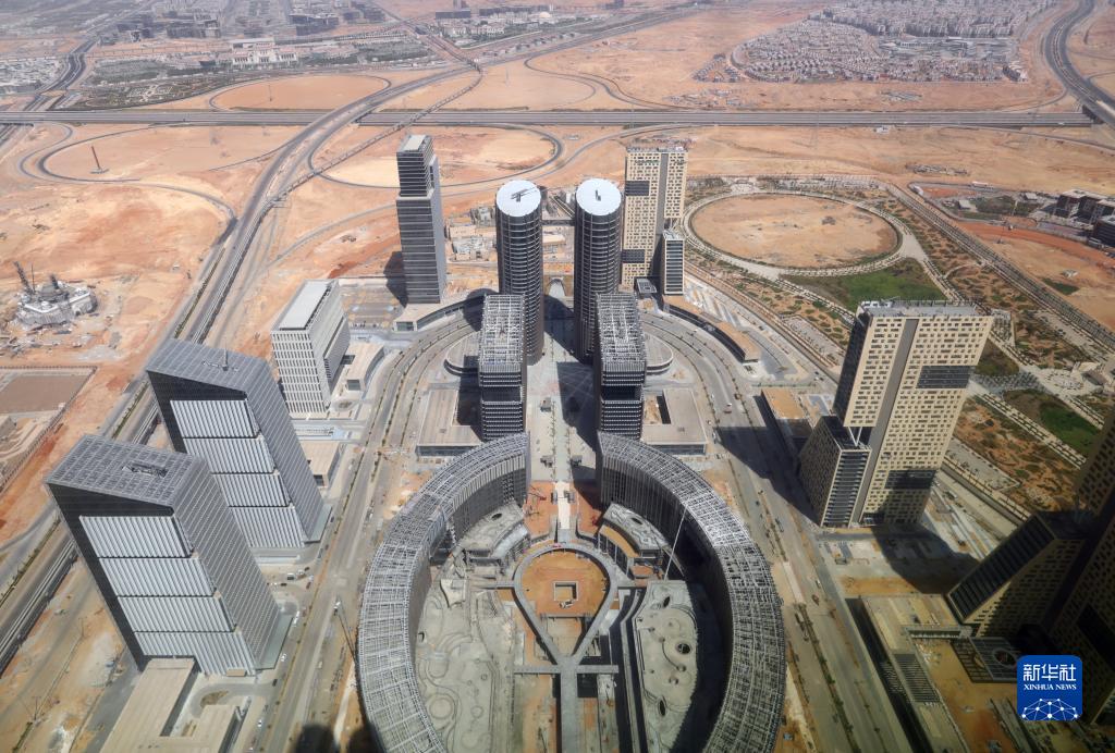 這是7月24日在埃及開(kāi)羅以東拍攝的新行政首都中央商務(wù)區項目建設現場(chǎng)。