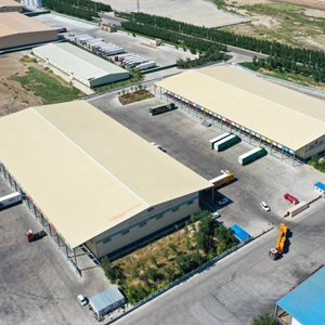 在新疆阿拉山口綜合保稅區,一輛滿(mǎn)載貨物的貨車(chē)駛出跨境電子商務(wù)分揀清關(guān)中心(7月24日攝,無(wú)人機照片)。