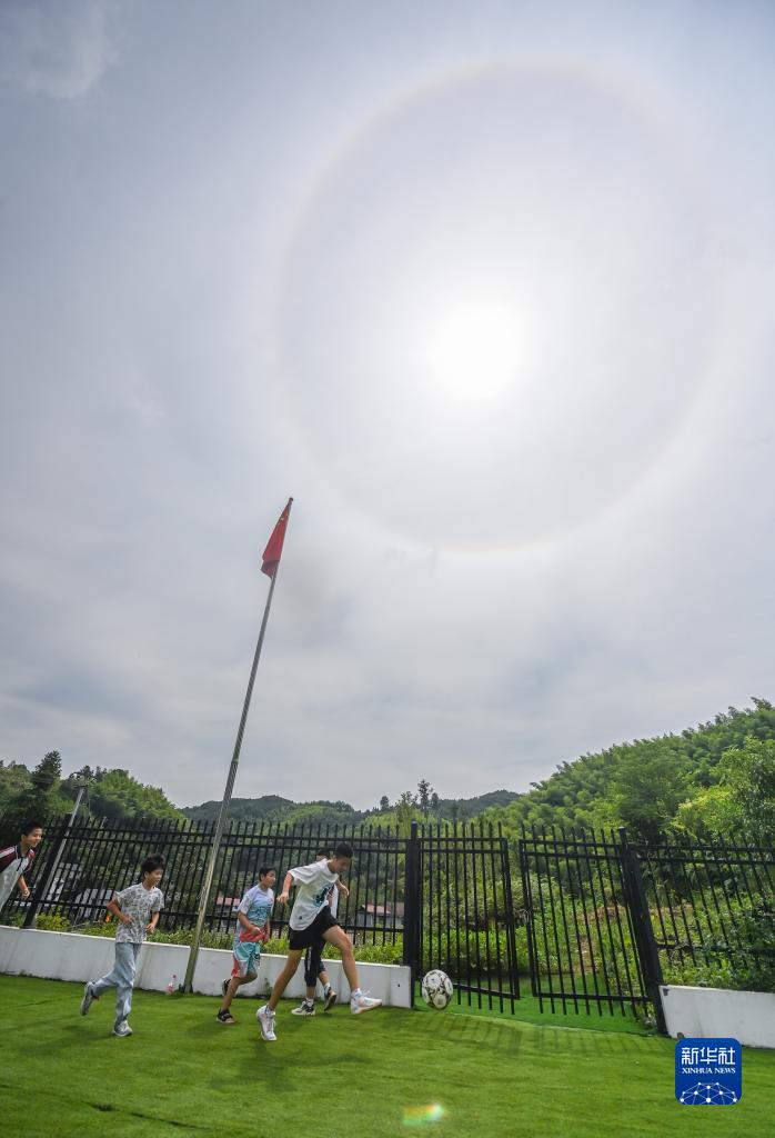 7月25日,在諸暨市馬劍鎮上和村的侯門(mén)山鄉村圖書(shū)館,暑托班的孩子們在參加體育比賽。